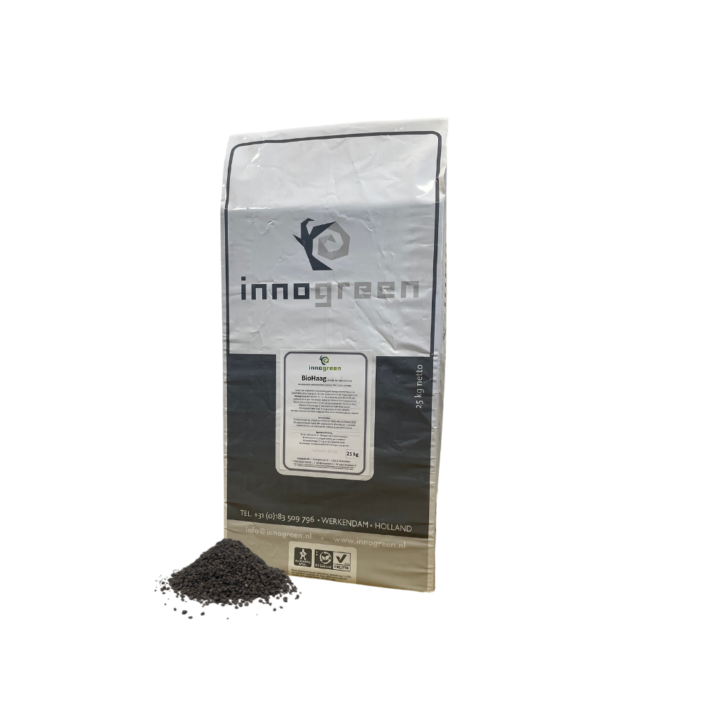 BioHaag© is een meststof speciaal voor hagen ontwikkeld die o.a. diverse mycorrhiza's bevat. Deze nuttige bodemschimmels gaan een symbiose (samenwerking) aan met de wortels van de plant. Zo is deze meststof o.a. zeer geschikt voor toepassing bij beuken (zowel Fagus als Carpinus). Er ontstaat een betere opname van voeding en de plant is beter beschermt tegen ziektes.