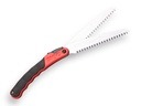 Silky vouwzaag F 180-7,5 (Silky artikelnummer KSI512518N) Bladlengte: 180 mm (tot ± 90 mm) Vertanding: grof (7.5 tanden per 30 mm) De vouwzaag F180 is compact, licht van gewicht (150 g), gemakkelijk vouwbaar en veilig vanwege de vergrendelknop. De scherpe tanden worden dan veilig bedekt doordat ze volledig in de handgreep vallen. Als u de zaag nodig hebt, dan vouwt u deze gemakkelijk uit dankzij de inkeping in het blad, zelfs bij het dragen van handschoenen. Het rechte blad van de F180 vouwzaag is verchroomd en voorzien van Silky's unieke Mirai-Me vertanding. Deze laser uitgesneden tanden, met een kerf van 1.3 mm., zagen snel en gemakkelijk vers hout. De rubberen handgreep ligt comfortabel en vast in de hand en absorbeert trillingen. Het zaagblad maakt u het beste schoon met olijfolie. Hars lost op in olijfolie en dit is dan ook een effectieve en milieuvriendelijke manier om het blad te reinigen en de zaagcapaciteit te behouden. Zagen is alleen leuk als het gemakkelijk gaat. Denk op tijd aan een reserve zaagblad (art.nr. 1546010), zodat u gemakkelijk door kunt zagen. Vanwege met model en prijssegment is deze Silky vouwzaag ook voor de particuliere kwaliteit liefhebber geschikt. Silky wordt geproduceerd in Japan sinds 1919 uit hoogwaardig SK-4 Carbonmetaal
