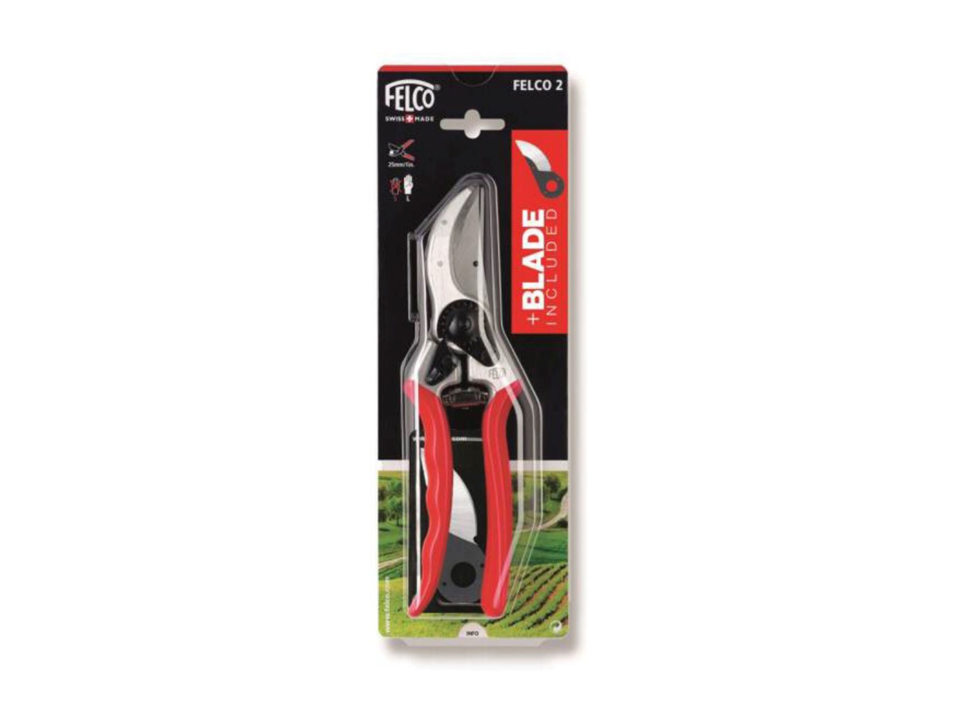 Deze FELCO 2 snoeischaar wordt geleverd inclusief een reserve bovenmes FELCO 2/3.