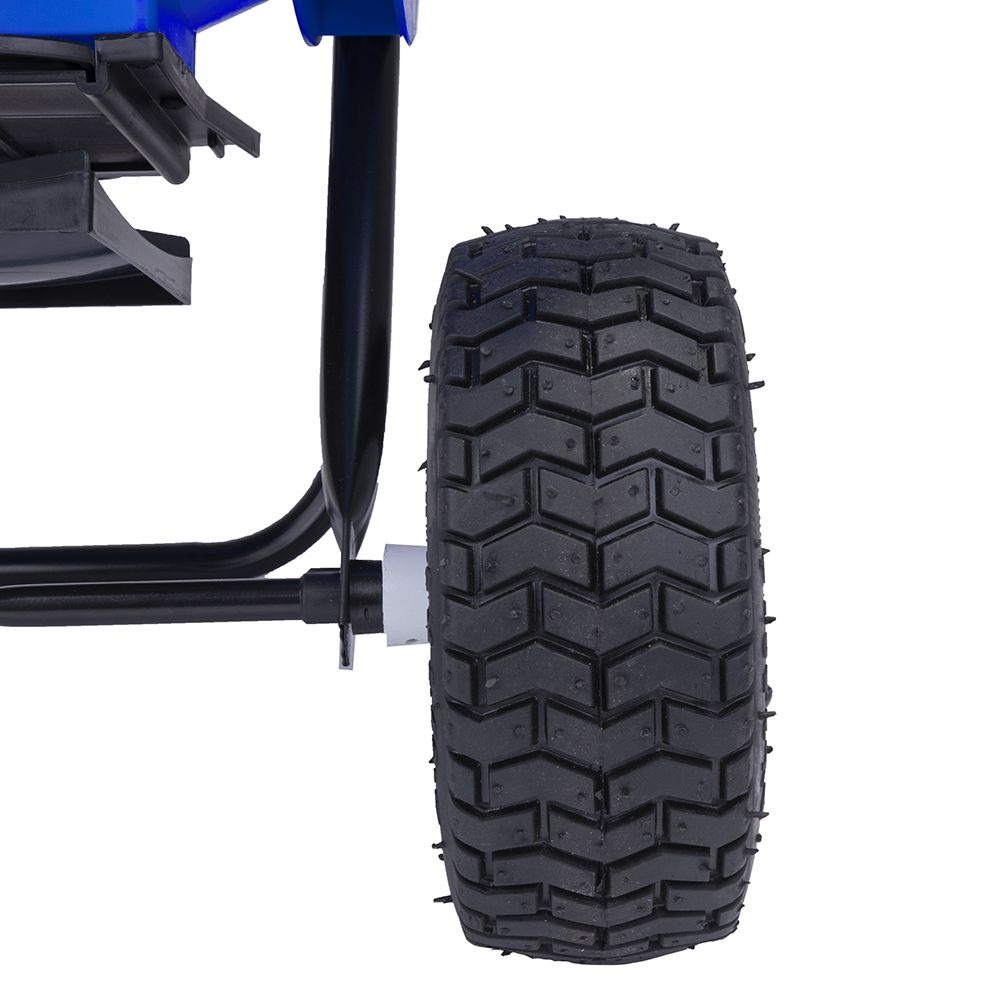 Het frame van de 2040PI+ is gecoat om het roesten tegen te gaan. Daarnaast beschikt de strooiwagen over grote 22 cm luchtbanden voor soepel gebruik. Met HQ highspead gear box en softgrip op de duwstang.