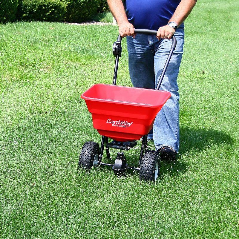 Earthway strooier met luchtbanden