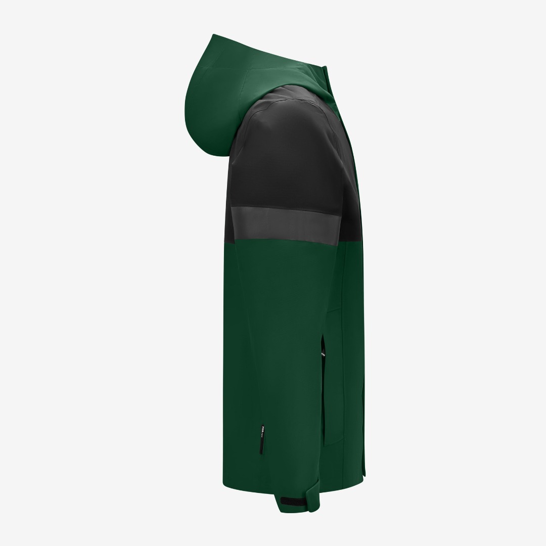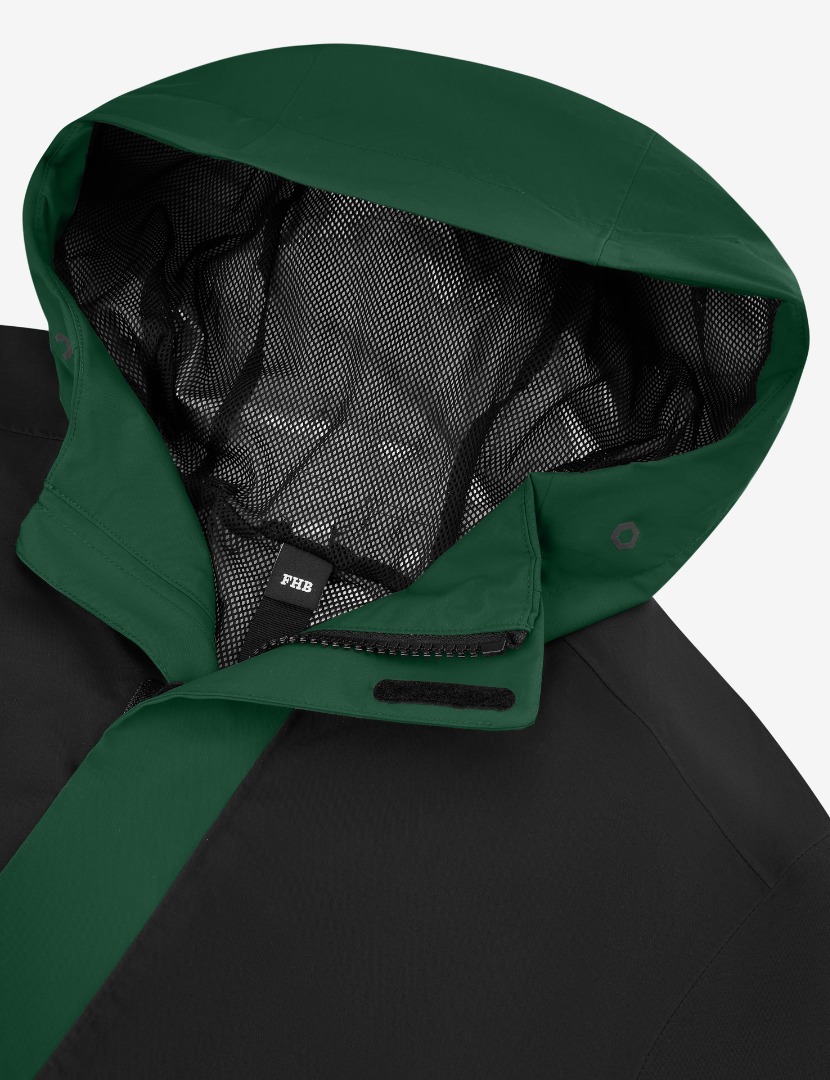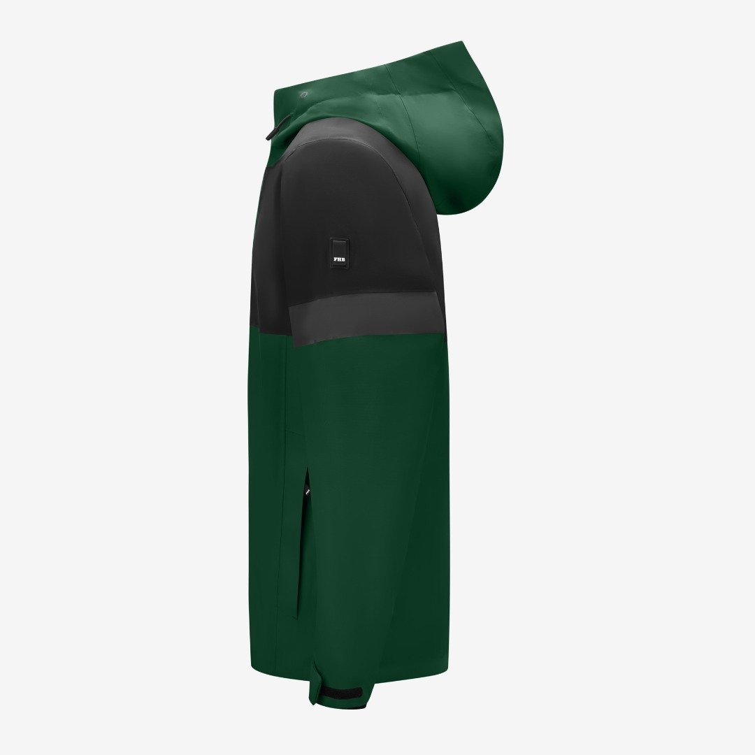 FHB LUCA, Regenjas DIN EN 343, Materiaal 100% gerecycled polyamide, 190g/qm; binnen: Mesh- en Zakvoering 100% polyester, Mouwvoering: 100% polyamid Dit hoogwaardige jack biedt perfecte bescherming tegen de regen conform EN343, waterdicht (waterkolom 10.000 mm), ademend (5.000 g/m²/24 uur) en winddicht, gesealde naden, capuchon en lijf met mesh-voering, voering in de mouwen, kinbescherming, in hoogte en breedte verstelbare capuchon, verborgen YKK-ritssluiting aan de voorkant, 2 ruime zijzakken aan de buitenkant, 1 binnenzak met rits, in de breedte verstelbare mouwen en taille, FHB-designelementen op de bovenarmen.