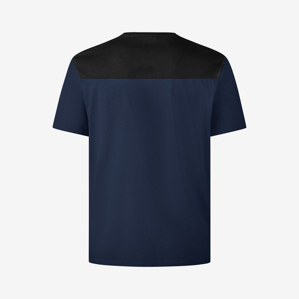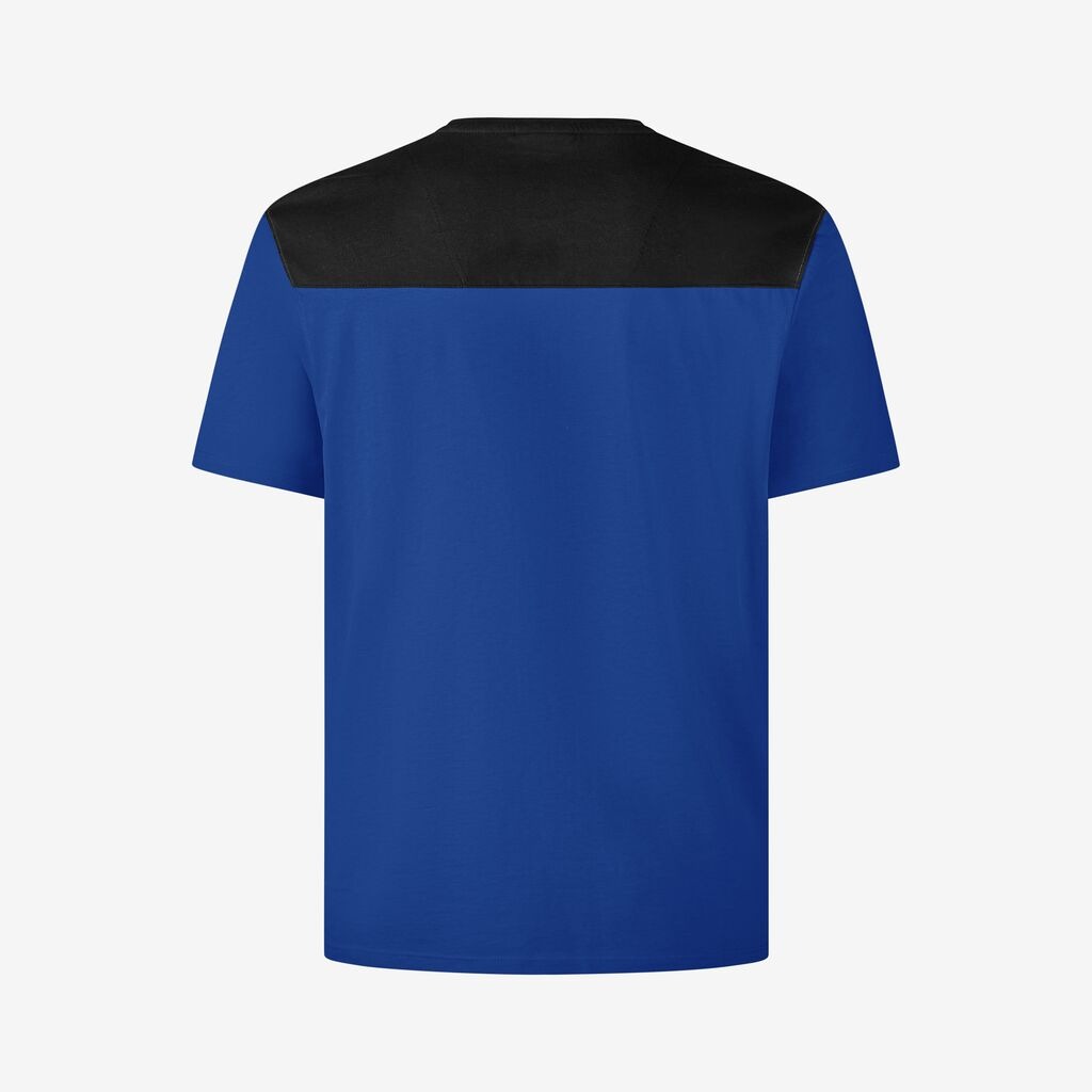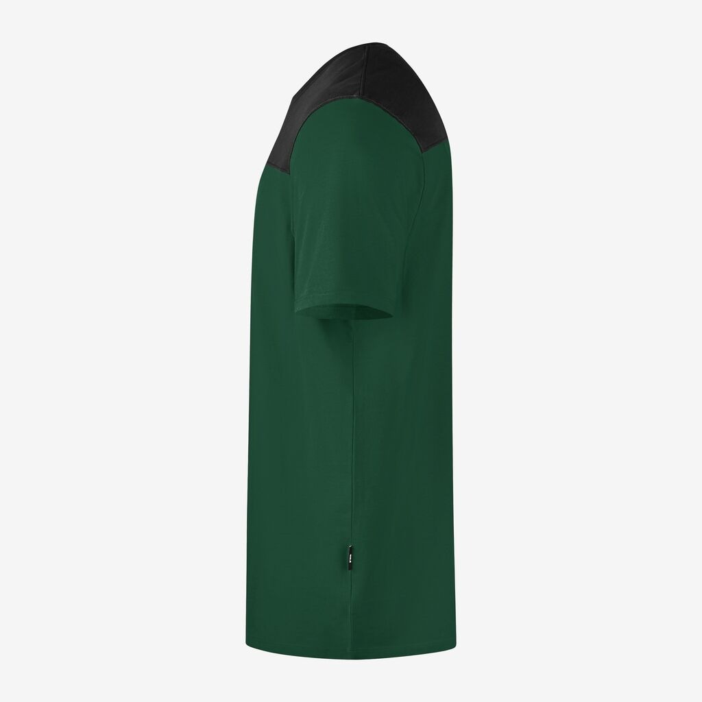 FHB KNUT, T-Shirt, heren, Materiaal 60% katoen BCI, 40% gerecycled polyester, 160 g/m² Licht en robuust T-shirt van een ademende single-jersey-mix, ronde, vormvaste halslijn, slimfit pasvorm, verstevigd met nekband en dubbellaagse stof rond de hals, contrastgebied ligt boven de afwerkpositie, geschikt voor industrieel wassen.