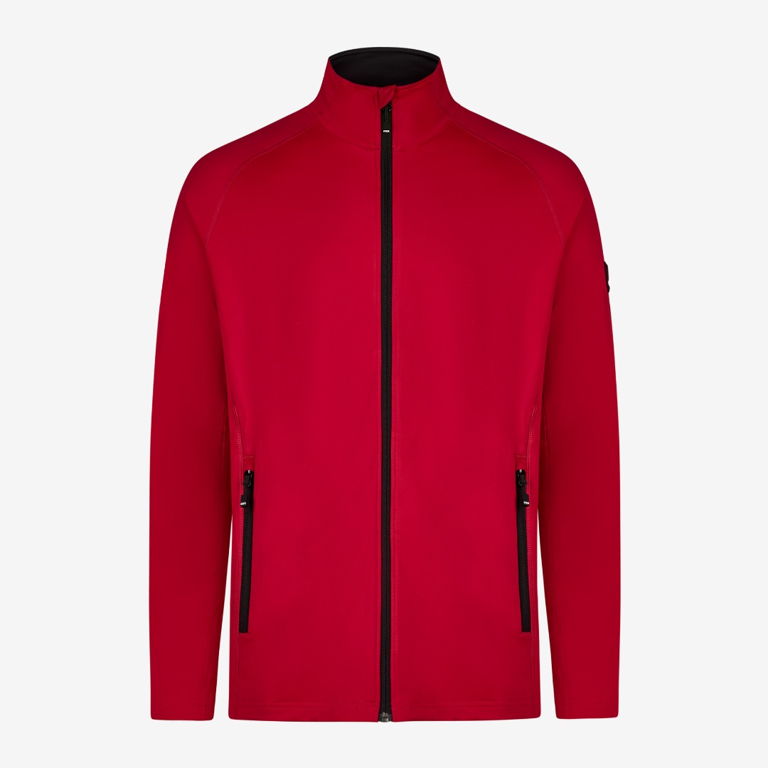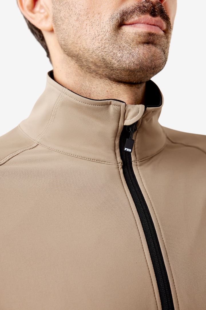 FHB KUNO, fleecejack, powerstretch, hoogwaardige en bijzonder functionele tussenlaag, nauwsluitende pasvorm, microfleece aan de binnenkant, jersey van gerecycled polyester aan de buitenkant, hoog draagcomfort door raglan-snit zonder schoudernaden, 2 grote ritssluitingen zakken, 1 binnenzak, elastische manchetten en zoom, platte naden, ritssluiting vooraan met kinbescherming, borstzak is geschikt voor borduring/bedrukking. Oeko-Tex Standaard 100.