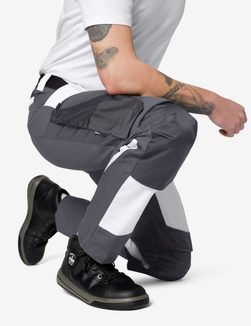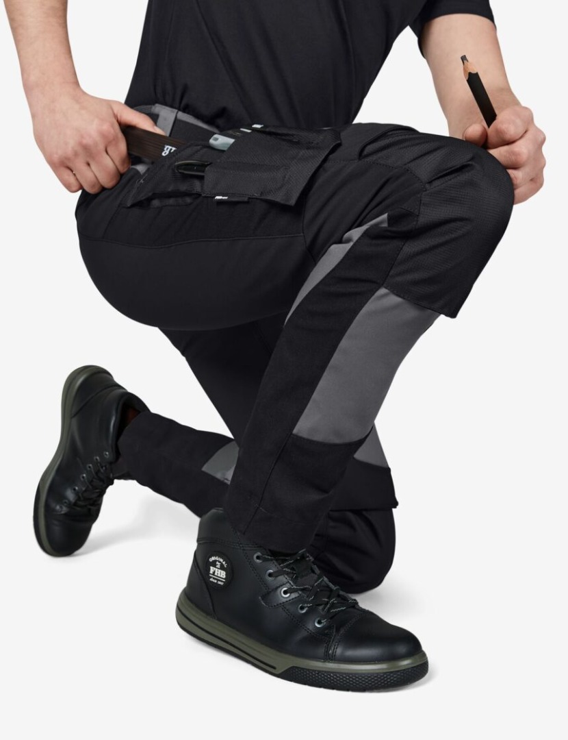 De elastische stof (4-weg-stretch) in de billen, kruis en kniegebied zorgt voor maximale bewegingsvrijheid.