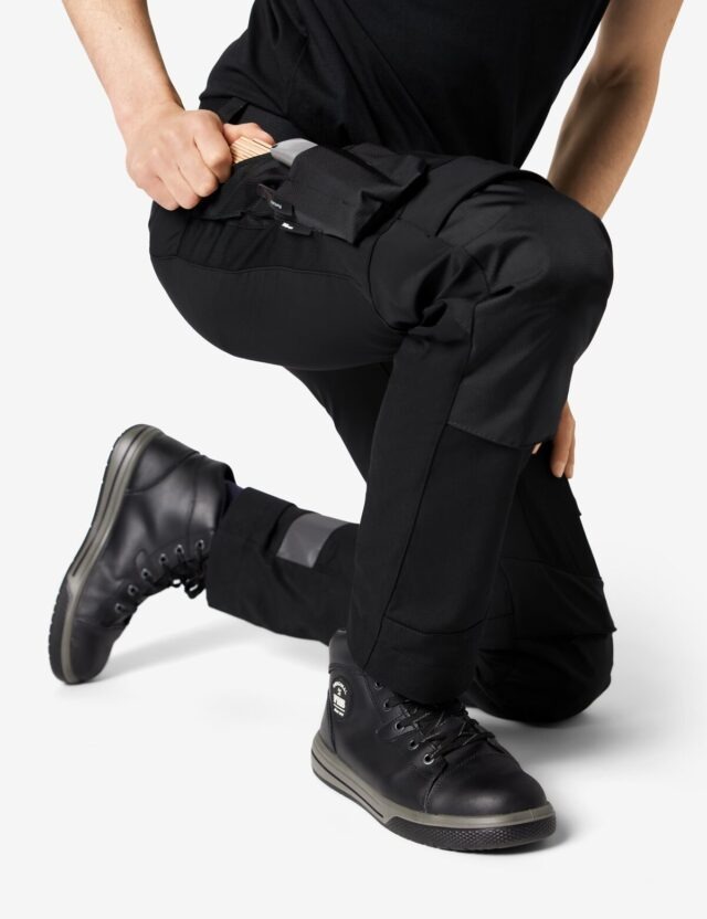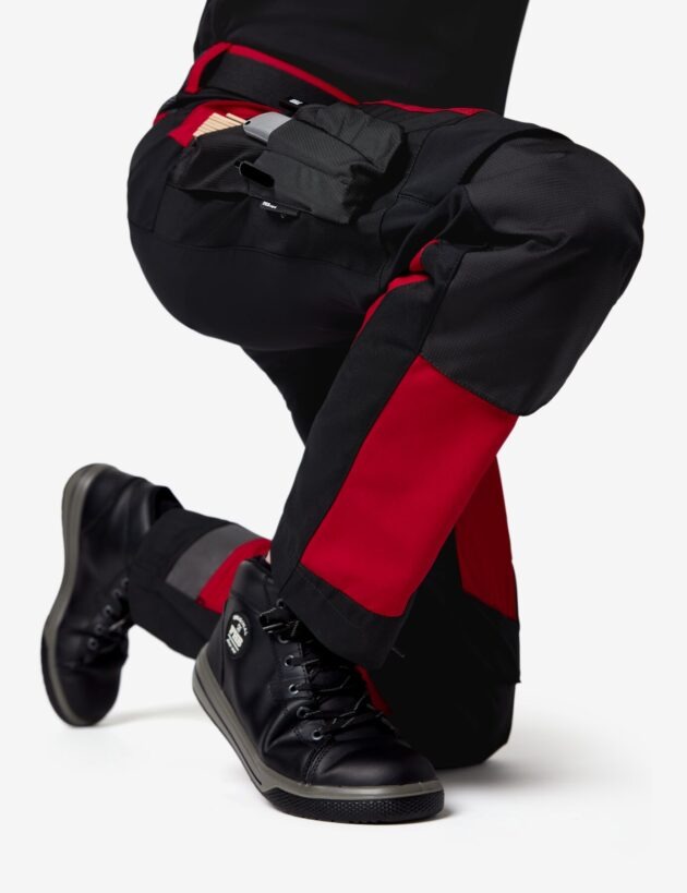 De verhoogde tailleband aan de achterkant verbetert het draagcomfort en zorgt ervoor dat de rug ook comfortabel bedekt is als je knielt.